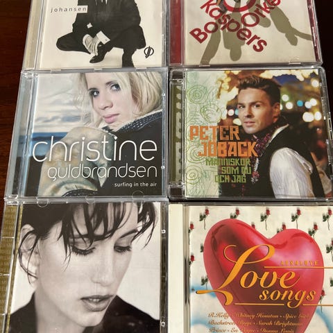 Diverse CD-er med svenske artister selges for 75kr per stk om du kjøper 1, 60kr per stk om du kjøper to og 50 kr per stykk om du kjøper tre eller flere. Fikser pakkepris om du tar alle.