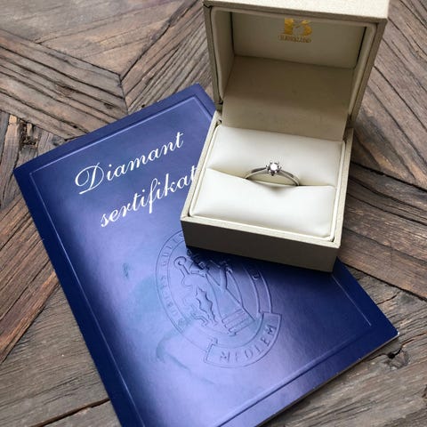 Diamantring 0,31 karat selges, forlovelsesring ny i pakning,ca 18mm i diameter, som tilsvarer vel 56 i størrelse, ringen er urørt , bare sett på, utsøkt kvalitet i diamantstein