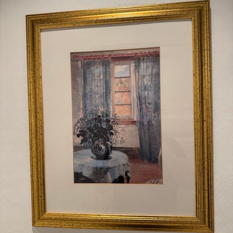 Bilder med gullramme. Hvert bilde har størrelse 16cm x 17.5cm. Selges for 100kr tilsammen, eller 50kr hver for seg.