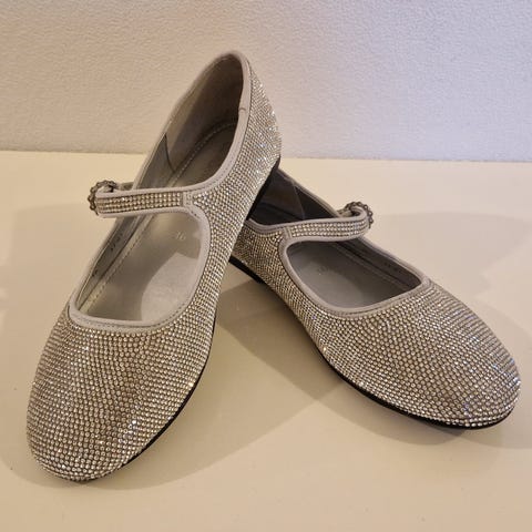 Som nytt! Lekre glitrende sølv pensko/sandaler str 33.