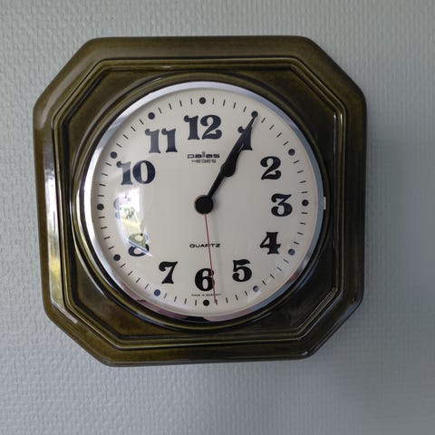 Liten Vegghengt Klokke i Speil-Ramme , Str. 11,5 cm X 9,5 cm, 3 cm tykk.