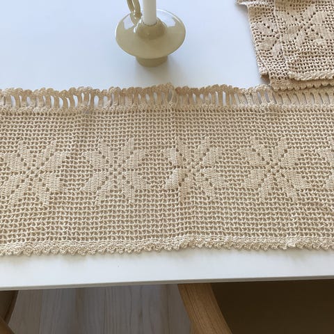 Håndheklet duk / løper. ROSA Bomull. 76x27 cm.