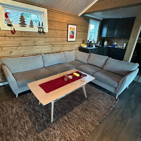 Bolia sofa selges. Brukt men fin og solid sofa og står nå kun til oppbevaring nede i kjellerstuen da den er for stor her nede. Denne modellen er utgått men det ligner på etterkommerne SEPIA hos Bolia. Det er en lang modul og en kortere.