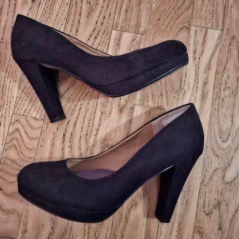 Elegante svarte damesko i semsket skinn...EKTE SKIN.Komortabel hæl.