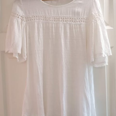 NY. Søt 100% bomull brodert foran topp. Hvit. H&M.