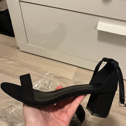 Selger ubrukte svarte høye hæler frs Nelly i str 40, men føles som 39.