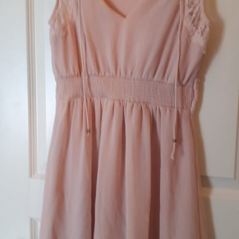 Kjole i str 42 jeg tror den er litt liten i str. Ny pris er 249. Pris lappen er enda på.