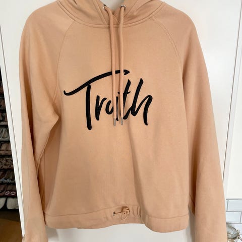 Kort hettegenser fra FB sister str. XXS/XS selges. Brukt bare 1 gang. Flott tilstand. Lys lavander /rosa farge.85% bomull, 15% polyester.