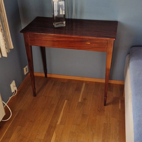 Bord passer ved hovedinngang eller i stua. Det er liten skade på en ov beinene så en liten reparasjon må regnes.
