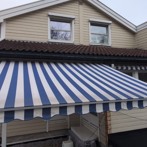 Denne markisen er enkel å montere på veggen. Håndboken og nødvendig maskinvare er inkludert i leveransen.