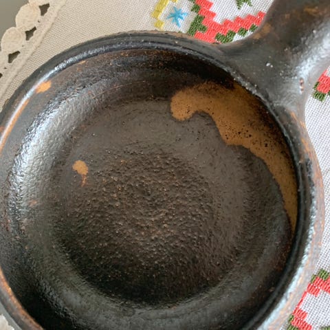 Skål 8cm høy, 14 cm dia + håndtak. Frakt m post i tillegg. Tlf.99229853.