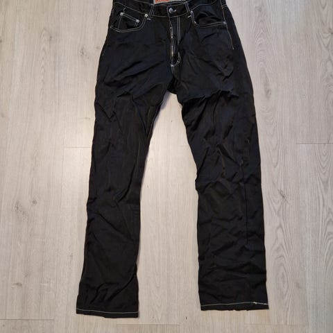 Selger en superkul bukse fra Future Dimensions, kjøpt på 90-tallet på Body map på Arkaden i Oslo, de solgte litt «spesielle» klær. Kule detaljer, se nederst på buksebeina. Perfekt bukse til Buffalo sko. Størrelse L, pent brukt. Mørk lilla farge, behagelig stoff.