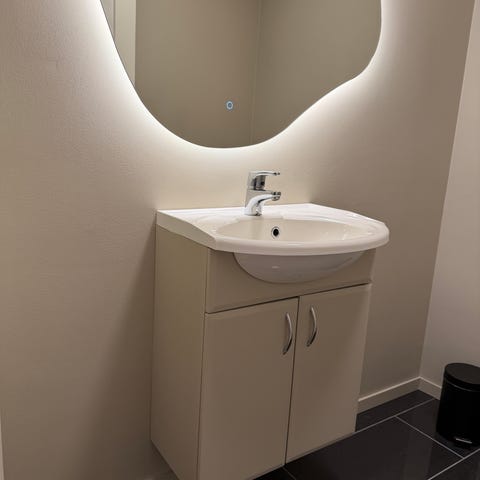 Innredningene står utstilt i showrommet til en grossist i larvik.