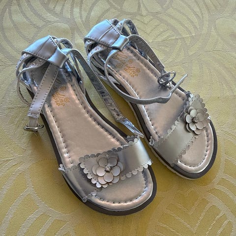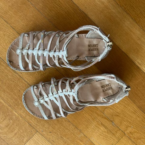 Pent brukte sandaler str 37, jente - gull/sølv, kr 150,-