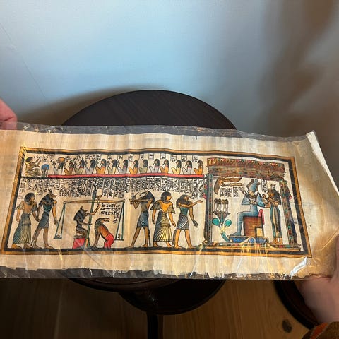 Papyrus malerier kjøpt hos autorisert forhandler i Kairo i Egypt i 2004.
