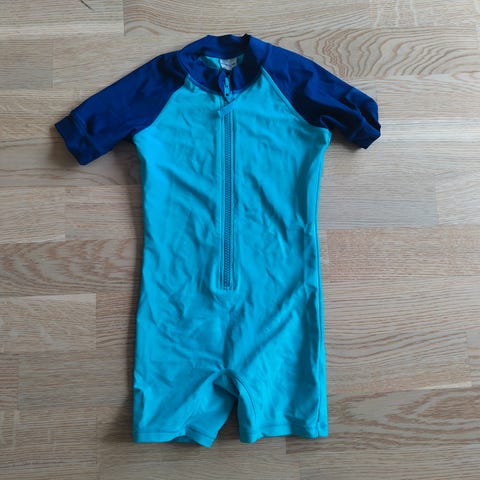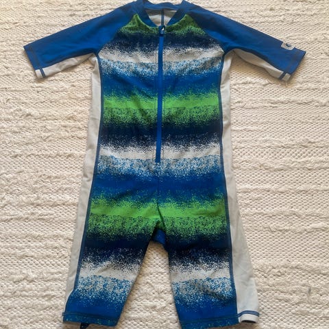 Soldrakt til stranden? Reima Sunproof soldrakt til barn str 7 år (122). Blå/grønn/hvit. Solbeskyttelsesfaktor 50. Selges for kr 150. Kan sendes, kjøper betaler porto.