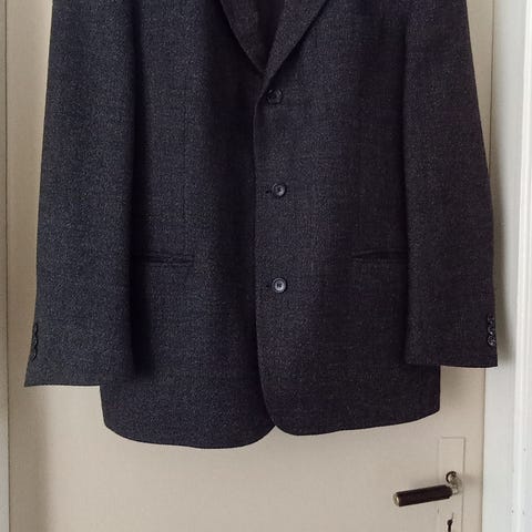 Selger en helt NY og lekker dress (jakke + bukse) i mørk grå/sort farge i str C50.