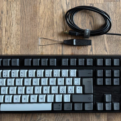 Kjøpt på Indiegogo men ikke brukt. Har sorte og hvite taster som kan byttes. Har både windows og mac taster.
