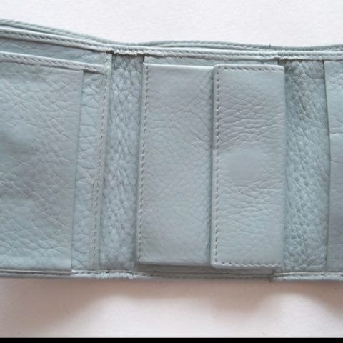Veldig fin lommebok med plass til sedler og et par kort, altså det aller mest nødvendige. Den er i ekte skinn. Kjøpt på Accessories for et par år tilbake. Lommeboka er brukt en del, men er bare litt slitasje på knappen man åpner med som ikke er særlig synlig, se siste bildet.