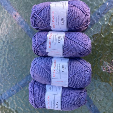 Strikket i Sandnes Baby lama. Farge: sjøgrønn. Mål 70×83 cm på teppet. Vaskes på 30 grader.