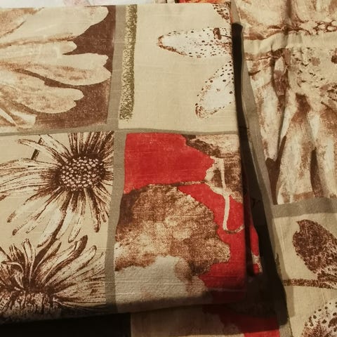 Hjemmesydde stuegardiner med flotte farger.