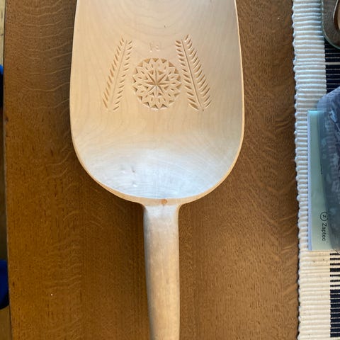 KARVESKURD. Håndlaget. Kjøpt på Nordkapp.