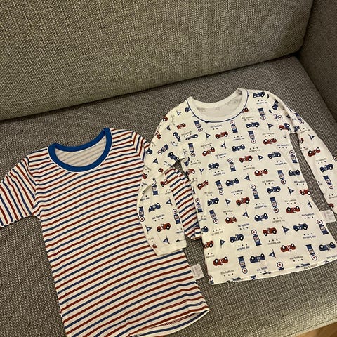 Nye gutte T-skjorte i bomull. Lange ermer. Selges i en pakke med 2 stk. 3 forskjellige str: 2-4, 4-6, 6-8 år. Jeg har mange av dem, du kan fortelle meg hvilken str vil du ha. 80kr for 2 stk.