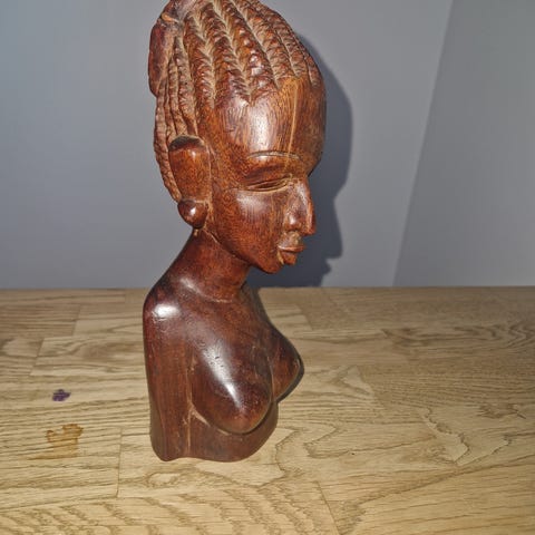 Afrikansk trefigur. Håndlaget70/80-tallet. Høyde 21 cm. meget fin med detaljer. pris 380,- nb. kan sende med posten
