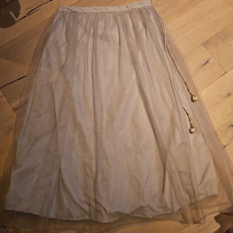 Selger et fint brukt skjørt fra samsøe samsøe. Strikk i livet, i fargen beige/hvit.