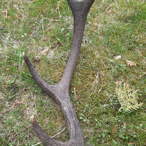 Lite hjortegevir ca 35 cm mellom topphorn, lengde ca 55 cm. Alle tagger ok.