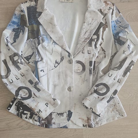 Jakken er lite brukt. Den er i bomull, polyester og elastin som gjør den litt strechy.