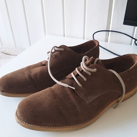 Lekre skinnsko/"herresko" med god såle. Grått semsket skinn. Made in Italy.