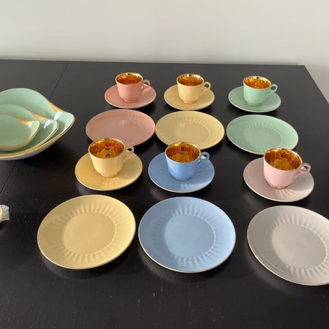 Fantastisk fint fransk vintage sett med kopper og underskåler selges