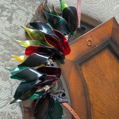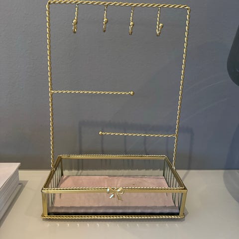 Et grønt/gult i plast, 75kr ( passer til å henge øredobber og ringer på )
