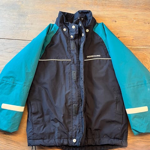 Lite brukt allværsjakke med for, tåler vind og regn i str 3-4 år. 2 lommer med glidelås og innerlomme, avtagbar hette med strikkstramming, glidelås og borrelås i front og borrelåsstramming på armer. Gode reflekser. Ingen skader. Sendes mot porto.
