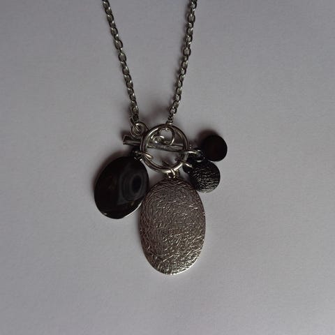 Flott smykke i sort og sølv med skinn rem fra Viceroy Fashion selges kr 180,-