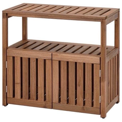 Skoskapet er laget av førsteklasses akasietre, og har utmerket holdbarhet. I tillegg er toppen solid nok til å bære vekten mens du sitter og skifter sko, noe som gjør at skoskapet utmerker seg med sin enestående funksjonalitet. Du kan også bruke det som en benk.