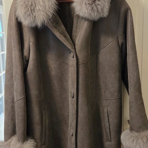 Lite og pent brukt myk ekteskinnkåpe med nydelig pels. Den er only one size, er veldig oversized, alle som kan brukes. Str xs - xl .