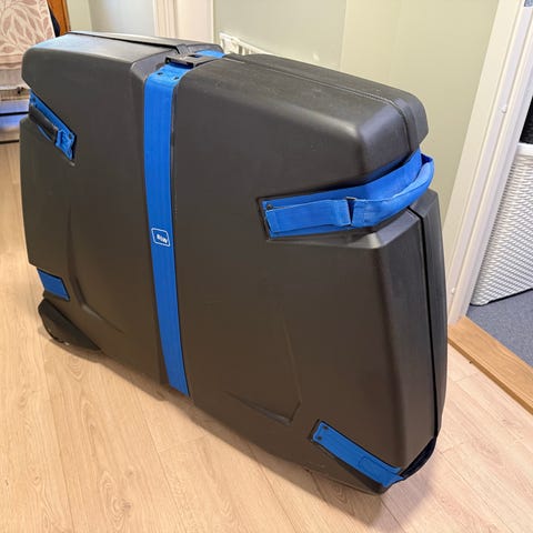 Kofferten er enkel å bruke, sykkelen ligger trygt inni med godt av polstring, det følger også med hjul poser i tykt stoff så hjulene ligger også trygt pakket når du reiser.