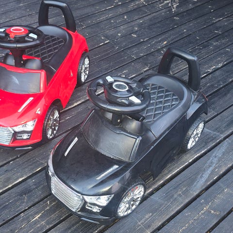 mens barna kan sitte som passasjerer på hver sin vogn.