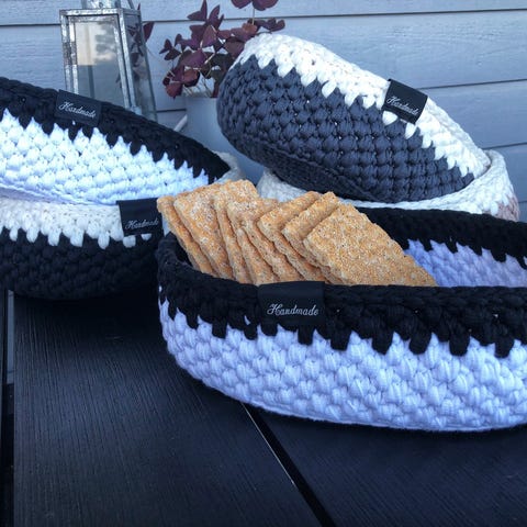 Håndlagde heklede kurver, pris for to stk, kan lages i flere farger tilgjengelig
