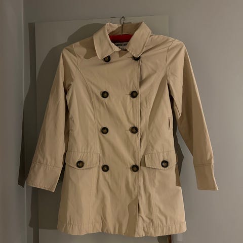 Name IT beig kåpe m brune knapper str.122-128 100kr