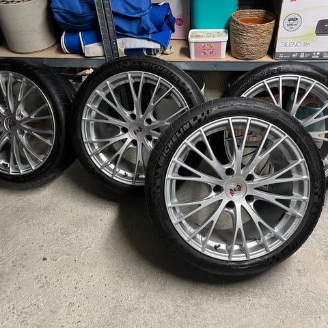 super gode MACK felg med dekk, nesten ubrukt da bilen ble kun kjørt på sommer, dekk med felger, vinter Viking Contact fra uke 39 i 2018, 235/35R19 var på en av mine biler, kjørt 500 km, 5x130 ET ligget på dekkhotell og var også montert Porsche 911.