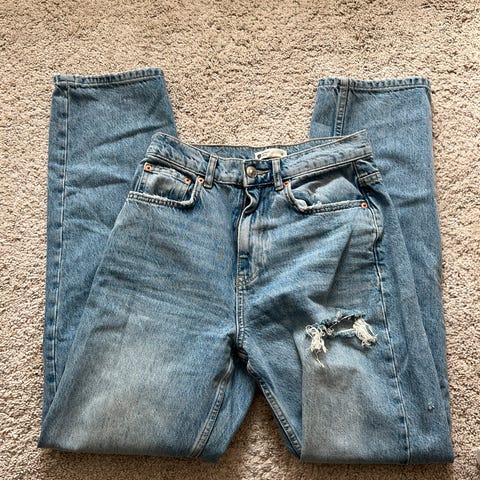 Jeans str. EU 34/XS fra Bershka selges. Ikke brukt, bare prøvd, ser ut som nye. Ikke noe stretch her, 100% bomull.