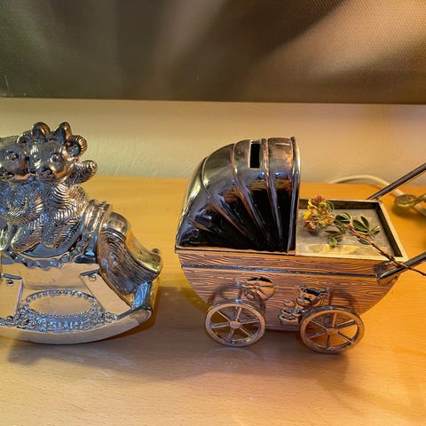 Sardinboksholder i sølvplett fra gamle United Sardinfabrikk i Bergen. Enkel, uten mønster.