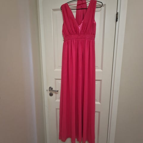 Brukt 1 gang i bryllup, ingen skader eller slitasje på kjolen. Fin åpen rygg, der stroppene går på tvers. Kjøpt ny på nelly.