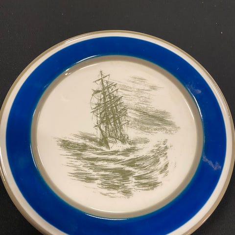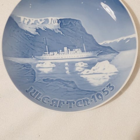 Dekorasjonstallerken i serien "Norske skuter" med motiv av skuten "Hebe", gitt som julehilsen fra ITT til deres forretningspartnere i 1980. En hyggelig tradisjon som dessverre er forsvunnet!