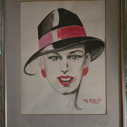 Denne tegningen synes jeg er bedre teknisk og kunstnerisk enn mange av de øvrige. Rammen er yngre og kan godt tilpasses motivet på en noe bedre måte. Mål på tegningen uten ramme: 47 gange 62 cm. Det er to små hull i papiret så pga det er prisen satt lav. Se godt etter.