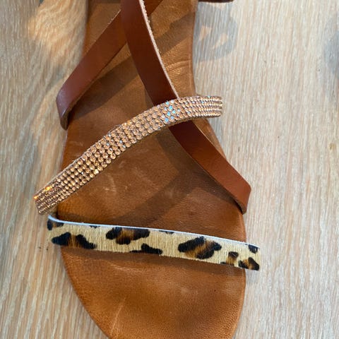 Lys brun farge. Str 37.5. De er lite brukt, bare et par ganger. Dust bag føler med.