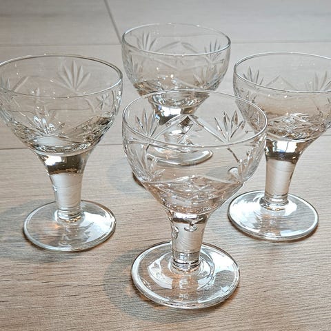 5 stk. Hadeland sotfargete likør glass. 6 cm. høye .